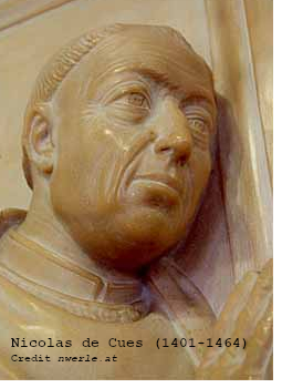 Il n’est pas rare de nos jours que des férus de philosophie et de métaphysique connaissent le nom de Nicolas de Cues. Mais combien sont-ils ? Se comptent-ils par dizaines, centaines, voire quelques milliers à travers le monde ? Et puis, de Cues était un cardinal, ayant vécu entre 1401 et 1464. En quoi un théologien a-t-il pu contribuer à ce sujet hautement scientifique, bien avant que l’église en soit venue à accepter la validité de la Science ? Ce sont ces certitudes souvent assenées, malheureusement, par des sources tout à fait officielles de l’enseignement public et religieux, que cet article compte commencer à ébranler. Nicolas de Cues est d’abord la figure la plus éclatante de la Renaissance européenne. Homme de droit, ses conceptions politiques furent totalement en avance sur son temps : les êtres humains étant pour lui non seulement doués de raison, contrairement aux animaux, mais libres et égaux entre eux, il proposa un modèle de démocratie républicaine dans lequel l’autorité ne pouvait être légitime que si les peuples lui apportaient leur consentement. Il fut aussi un grand scientifique. Bien avant Copernic, c’est lui qui remit l’hypothèse héliocentrique de notre système planétaire à l’ordre du jour, contre Ptolémée.