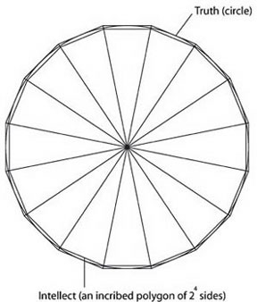 Nicolas de Cues établit ainsi la supériorité du cercle, engendré par une action de rotation, face aux polygones, et découvre ainsi les nombres transcendantaux. Ces conceptions se traduisirent par une foule d’applications utiles pour l’homme, notamment en mécanique, dans la construction de machines. Par sa reprise de l’approche de Platon et de la géométrie grecque, tout en les portant plus loin, en les plaçant dans le contexte d’un univers dynamique défini par une physique de croissance anti-entropique, Nicolas de Cues est le fondateur de la science moderne, après l’âge de ténèbres qui sévit en Europe suite à l’effondrement de l’Empire romain. Ses travaux ont inspiré toute une lignée de grands savants par la suite. Parmi eux Johannes Kepler, dont les réflexions de Cues, attirant l’attention des futurs astronomes sur l’impossibilité de l’existence des cercles parfaits dans la nature, se trouvent dans les livres où Kepler décrit le processus de découverte de ses trois lois astronomiques. On trouve aussi le grand Leibniz , dont la découverte du calcul différentiel, dont le concept se trouve déjà à l’état embryonnaire chez le Cusain, permit de résoudre les problèmes posés justement par la mesure du mouvement elliptique, de croissance non-uniforme, décrit par les planètes autour du soleil. Mais ce sont ses conceptions philosophiques qui nous intéressent ici, conceptions sous-jacentes d’ailleurs à toute son œuvre scientifique et politique. Clarifions dès le départ, pour les esprits laïcs que nous sommes, que ces grands génies de la Renaissance, philosophes, savants, artistes, n’opposaient pas la foi à la raison, mais considéraient, au contraire, que l’homme avait non seulement la liberté, mais aussi le devoir, d’utiliser ses pouvoirs créateurs, à l’image de ceux de Dieu, pour découvrir les lois de l’univers et utiliser leurs découvertes dans l’amélioration du commun des mortels. Ainsi, pendant que des géomètres apprenaient à maîtriser le point à l’infini sur un plan projectif et que les peintres utilisaient cette perspective sur leurs toiles pour émerveiller les hommes avec de belles métaphores visuelles, les architectes redécouvraient l’importance des courbes complexes – la chaînette – pour la construction d’ouvrages lourds, tels le dôme de la cathédrale de Florence, et un grand ingénieur, Léonard de Vinci, inventait une foule de machines pour remplacer le travail manuel des hommes et aussi celui des bêtes de somme par la force mécanique. La Renaissance, ce fut le rejet de l’obscurantisme, une ère où les hommes ont voulu connaître la grande perfection des lois de notre univers physique, qu’ils ont attribuée à l’intention d’un Dieu créateur dont ils pouvaient être, eux-mêmes, par le développement de leur propre esprit créateur, l’image vivante. C’est très précisément ce que Nicolas de Cues explique dans un autre ouvrage, Des Conjectures [2], où d’entrée de jeu il affirme : « Les conjectures [les hypothèses] doivent procéder de notre esprit comme le monde réel émane de la raison divine infinie. (…) La raison humaine est donc la forme du monde des conjectures, comme la divine est celle du réel. » Puis, dans Le Traité du béryl : « … de même que Dieu est le créateur des êtres réels et des formes naturelles, de même l’homme est le créateur des êtres de raison et formes de l’art qui ne sont rien d’autre que des similitudes de son intellect, de même que les créatures sont les similitudes de l’intellect divin. » Pour ce qui nous concerne, nous rejoignons ces grands génies de la Renaissance, dans la recherche d’un principe créateur dans l’univers qui donne une cohérence à l’ensemble, anime son développement – dans la tradition de Cues, la définition de Leibniz de Dieu n’est pas loin d’un moteur infini qui n’a jamais cessé d’engendrer et crée constamment par fulgurations – et par rapport auquel nos propres pouvoirs créateurs sont consubstantiels. Le Traité du béryl Voyons en quoi ce Traité du béryl peut nous aider à comprendre le processus de développement universel que nous présente le travail de Cody Jones. D’abord ce texte, tout comme d’autres travaux présentés récemment par de jeunes collaborateurs scientifiques de LaRouche, tels celui de Sky Shields sur les travaux de Sergueï Poulinets sur les précurseurs de séismes, fait apparaître un univers qui non seulement n’est pas le produit du hasard, comme la plupart des experts le prétendent aujourd’hui, mais, au contraire, semble s’organiser avec intelligence, créant de lui-même les conditions de son propre développement. Or, par quoi débute le Traité du béryl ? « Il faut d’abord être attentif au fait que le premier principe est Un ; et selon Anaxagore, on l’appelle intellect. » Nicolas de Cues nous montre ensuite à l’aide d’une image le processus de gradation par lequel ce premier principe Un, intellectif, engendre ou déroule à partir de lui-même tout ce qui est.